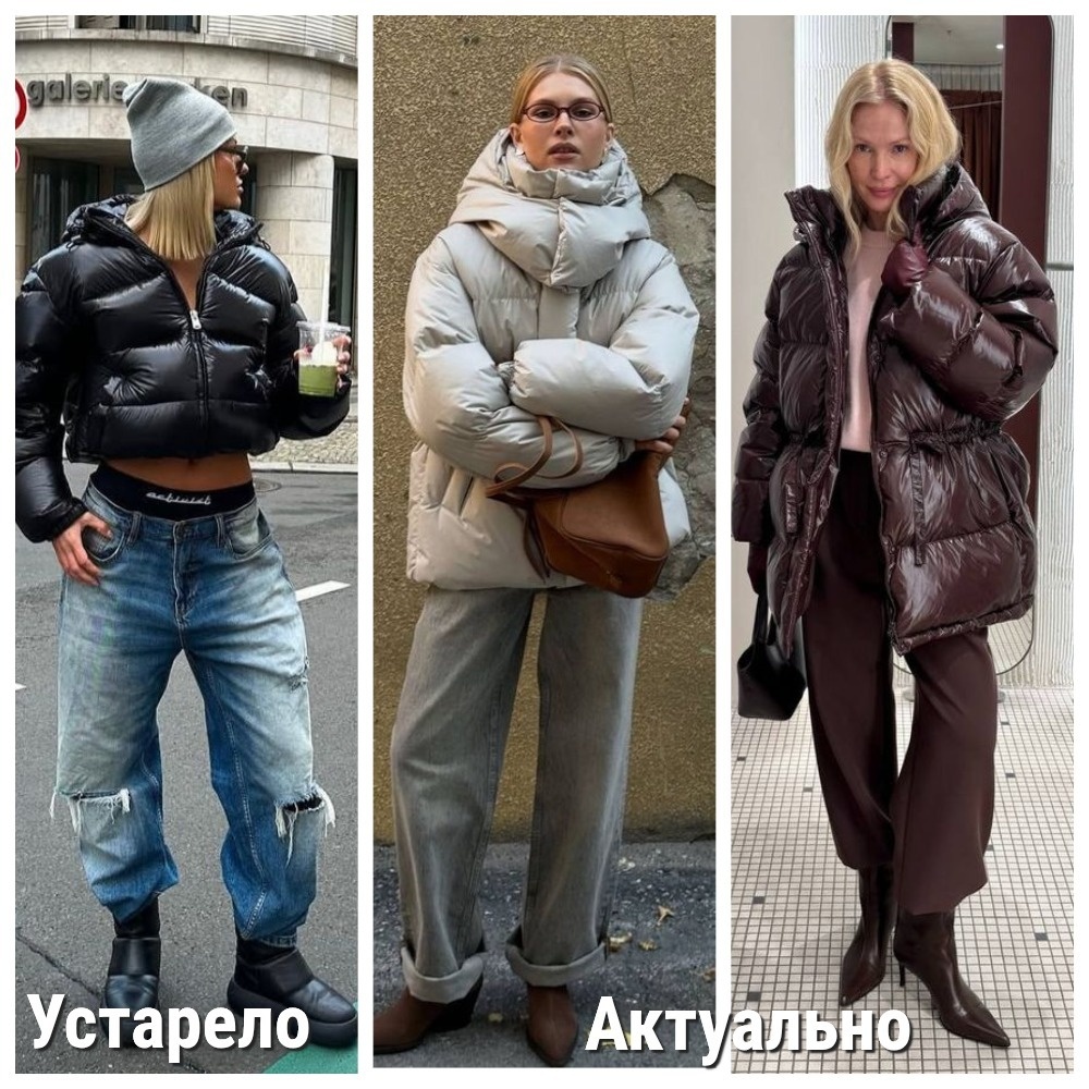 С пуховиками ситуация более категорична, и устаревшие модели легко идентифицировать по ряду признаков. К ним относятся: укороченная длина, стеснённый, несовременный крой и наличие пышной опушки на капюшоне. Эти детали сразу выдают вещь, созданную по канонам десятилетней давности.